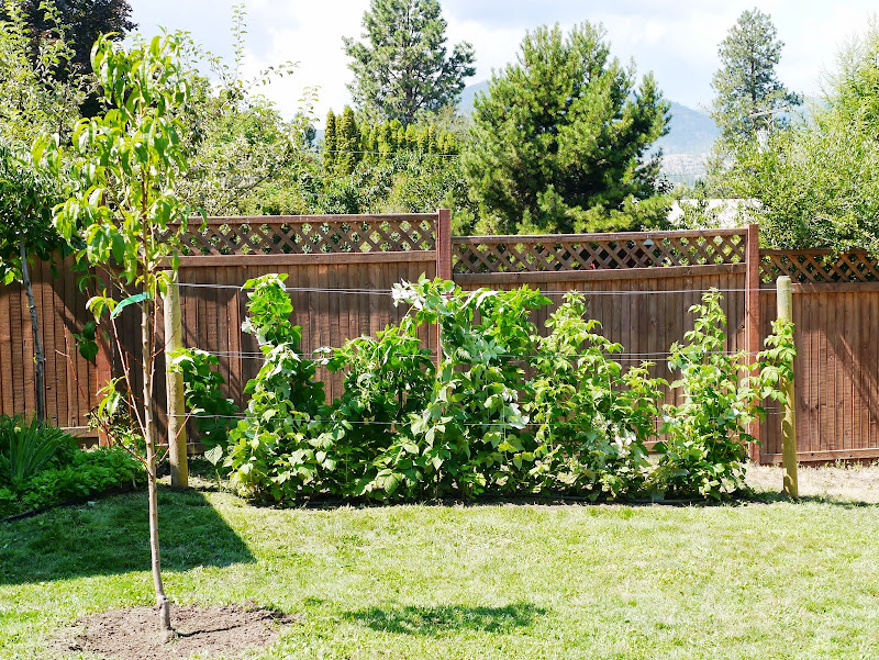 My husband got around to staking the raspberry plants and planting two apple trees and a peach tree. The fruit trees might take a couple years to produce so I’m glad we planted them this year. Other than the raspberries and fruit trees we’ve also planted two elderberry bushes and three saskatoon bushes. The only thing left to plant are two grape vines.