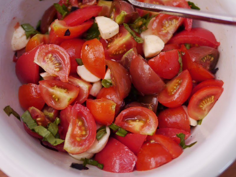 I always find it exciting to explore my garden after being gone a while. It’s like walking through a time warp. The potato and zucchini plants are taking over and sprawling all over the place. I can’t even mow the lawn near the garden beds, not that I mind. The tomatoes and peppers are starting to ripen. We picked our first bowl full of juicy ripe tomatoes to make a tomato, basil and bocconcini salad. Swoon.