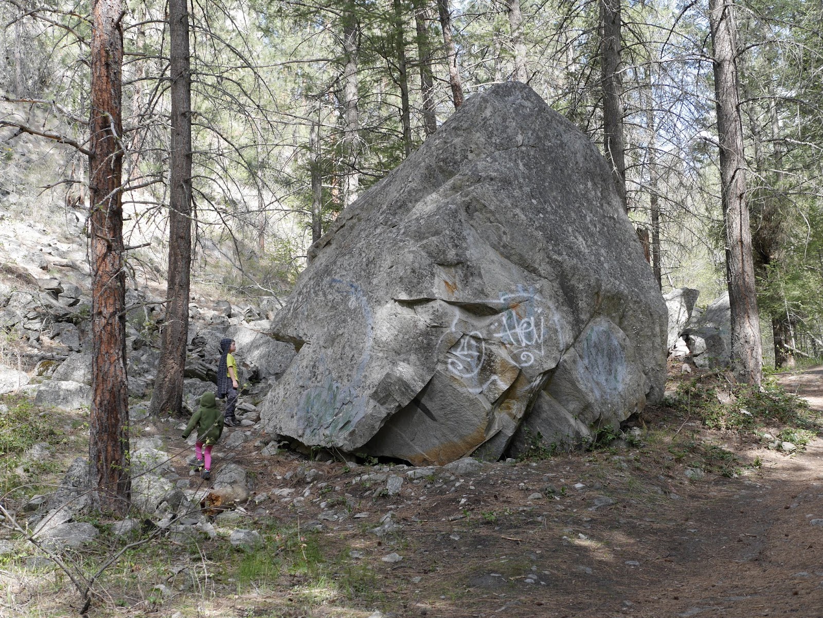 Children benefit in several ways by returning to hikes that have been previously explored. The first being that it encourages connection to an area which in turn fosters place-based learning. By becoming familiar with an area my children are more aware of the seasonal changes that occur over the year. They might notice the growth cycle of Oregon Grape shrubs or note that a stream is so “full and fast in the spring!”. Connection to an area also promotes questioning and curiosity about an area’s geography, geology and culture. My children might ask “why does this rock look like this?” or wonder about the pictographs they discovered.
