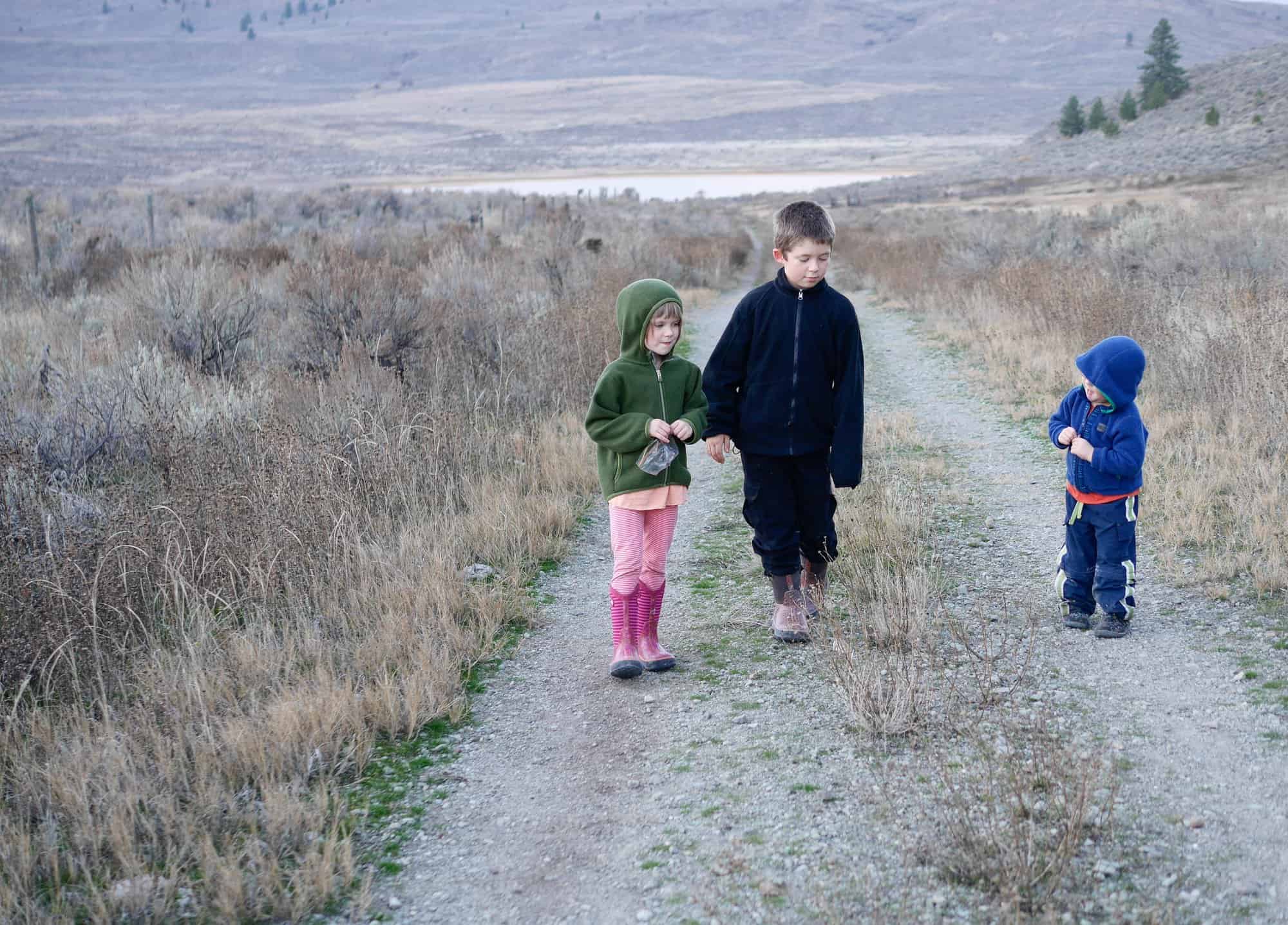 Our second week of #FallOutside2016 has zoomed by and already it’s mid-November. I can hardly believe it! We managed to get outside every day this past week but we’re still adjusting to the recent time change. Several times we had to end our adventuring early because the sun had set and it was getting rather dark. As we ventured outside this week we noticed fewer and fewer leaves on the trees. The landscape is slowly changing to those muted tones of grey, brown and yellow that are commonly seen here in the late fall. There are still many wondrous and beautiful things to see; we just have to slow down a little and look more closely. This week we discovered several blooming roses in one of our favourite gardens, found impressively large leaves in a neighbour’s yard and created a rainbow with the colours of nature. My children enjoyed testing out their new boots in water and mud as we explored new trails close to home. The pictures in this post are a collection of pictures from our second week of #FallOutside2016.