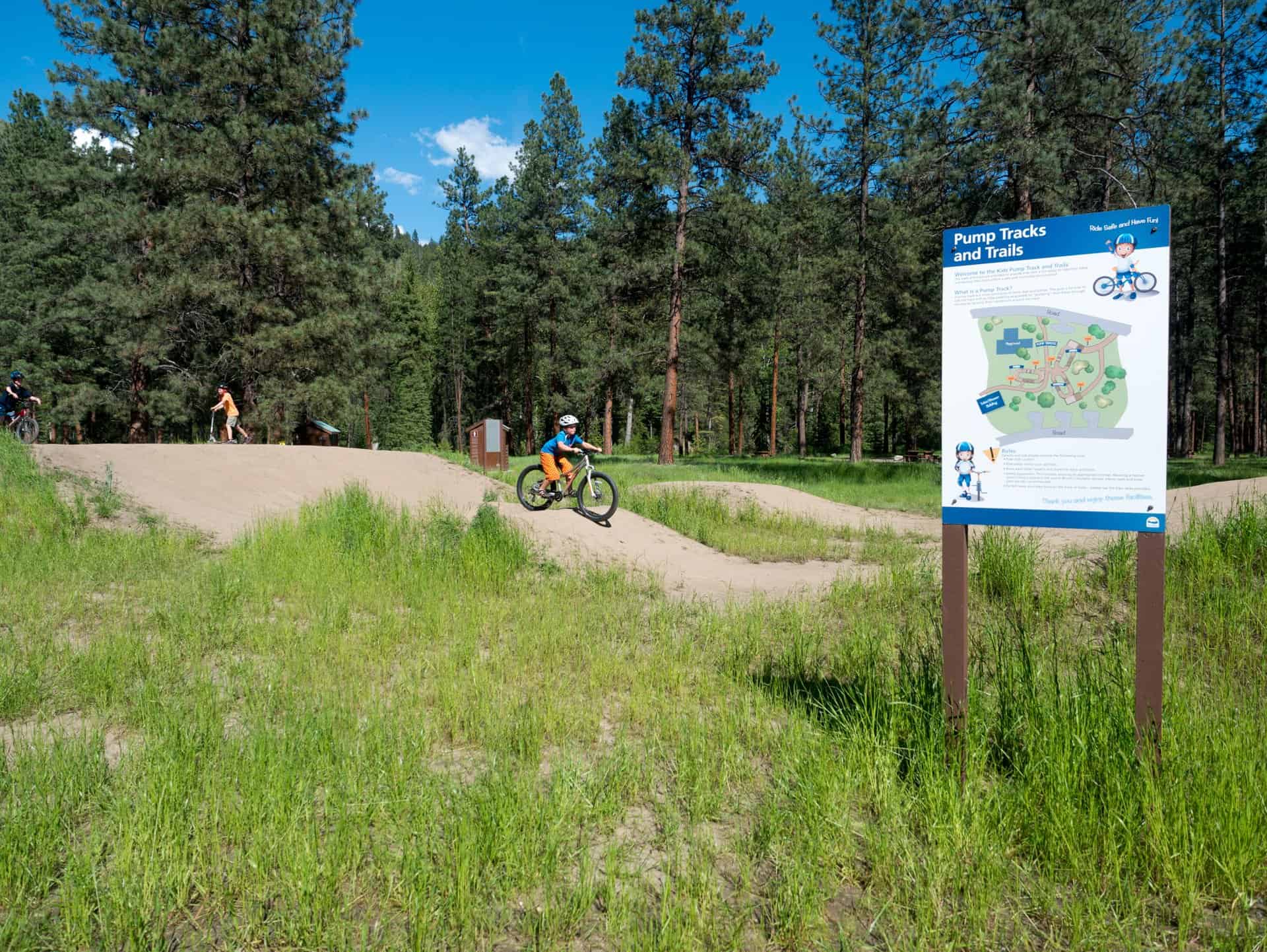 Families love this campground because it has a great play park for kids and a fun pump track (a bike track with turns, bumps and dips) for older kids to test out their biking skills. The Kettle River wraps around the campground and is a natural draw for everyone. However, be very careful, in the spring this river can be high and fast moving. This year (2017) the river was so high it flooded part of the campground for a couple weeks. Later in the summer, when river is low, it can be a fun place for swimming and playing.