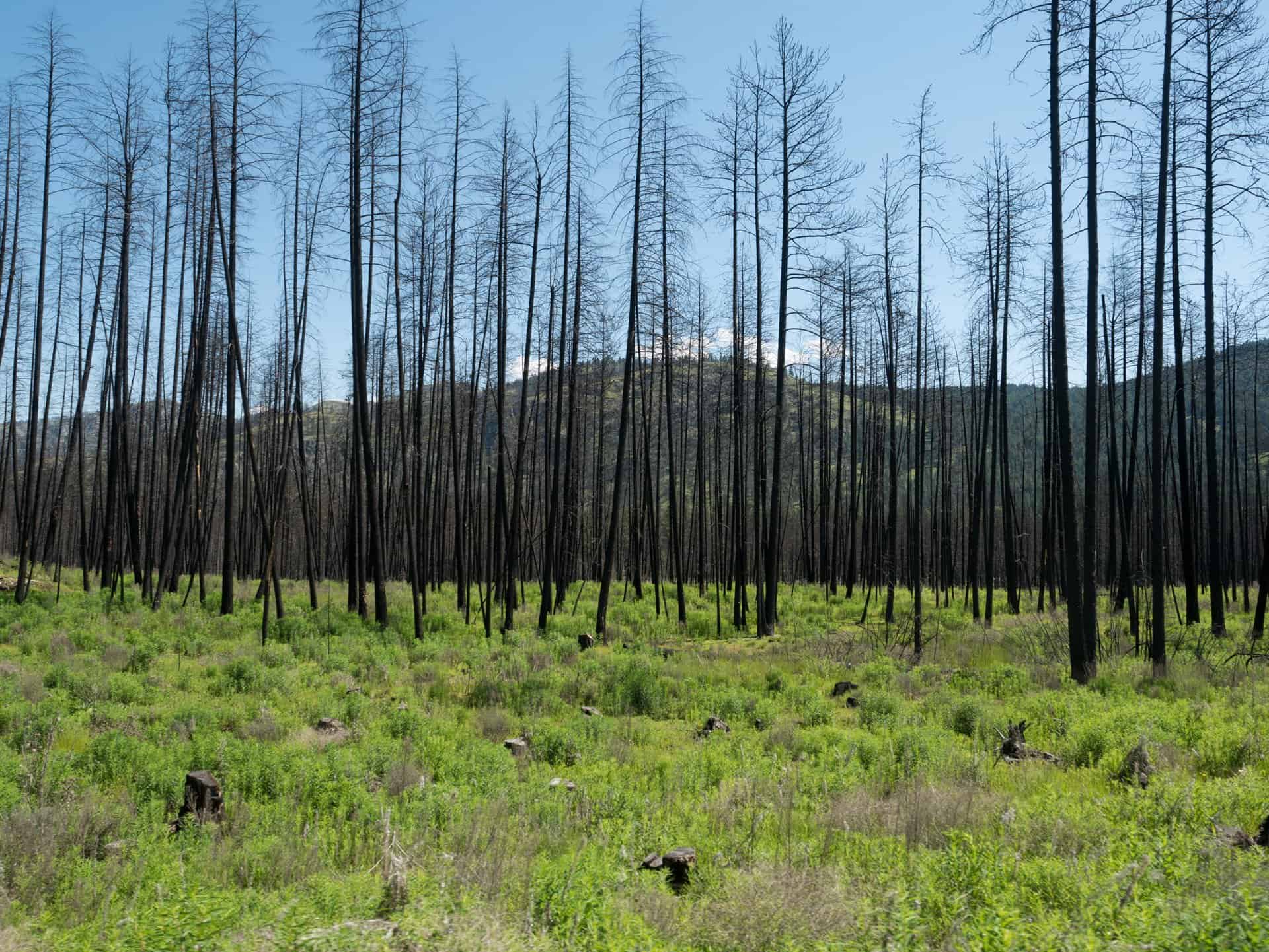 Upon entering the provincial park you will come face-to-face with the remains of hundreds of dead black trees jutting out of lush green undergrowth. At this point you might wonder if there’s any campground at all, but as you drive down the road the trees are scorched but still alive! Ponderosa pine are incredibly resilient to wildfire. The campground itself is still covered in beautiful lush forest.