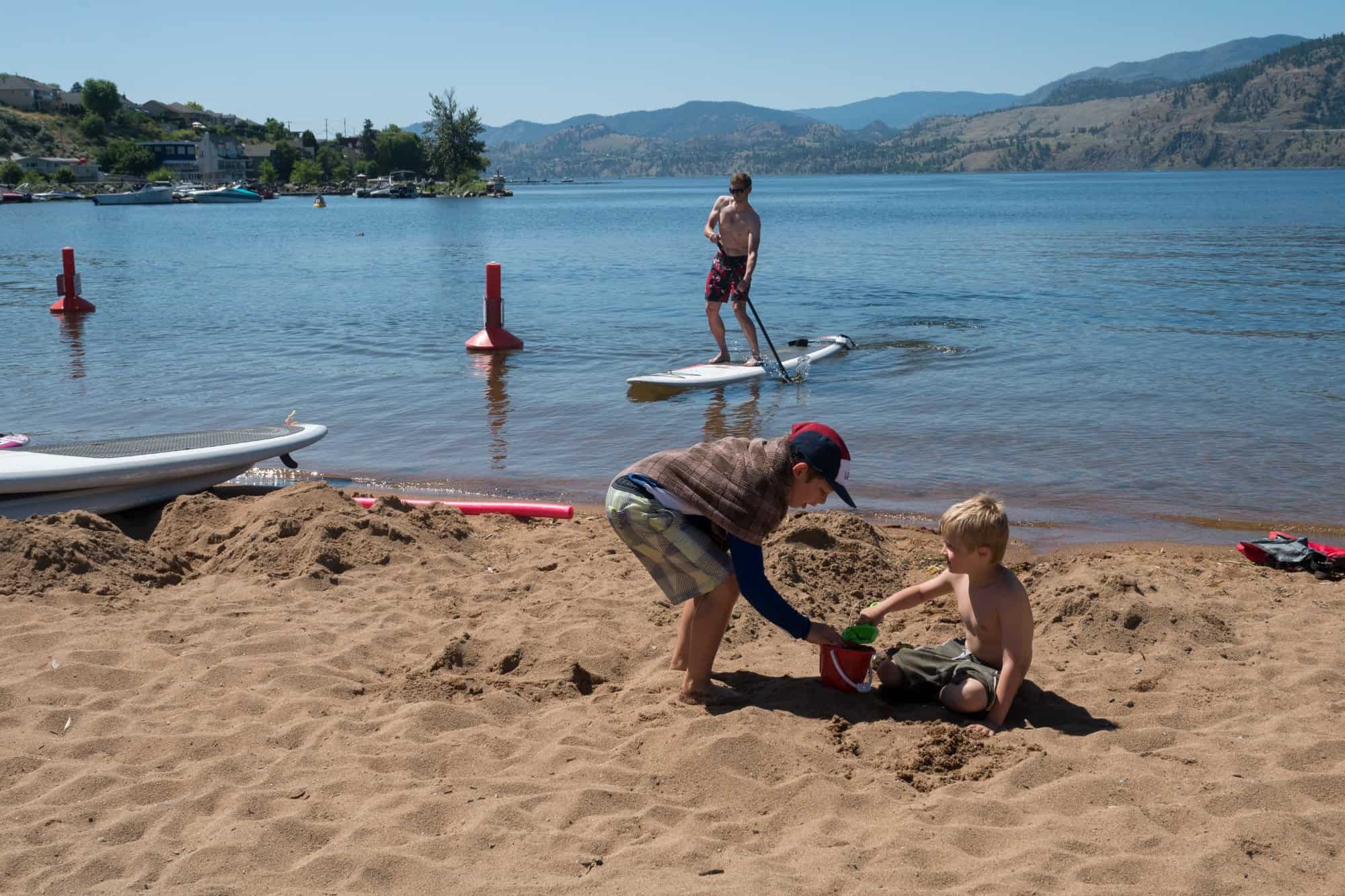 Again, if you’re new to SUP and are going with kids I recommend staying close to shore. That way kids can comes back for breaks or to switch equipment if things aren’t quite working. The Penticton Paddle Surf staff were really great about helping my kids figure out what they were comfortable using and being close to shore made it easy to switch paddles/boards as needed and to grab drinks of water.