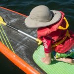 Even if you plan on going out for a short time, bring plenty of water and some snacks. Being out in the hot sun can cause children and adults to dehydrate quickly. If you don’t want to bring water on the board, paddle close to shore and come in for regular water breaks.