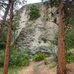 To access the rock climbing area turn off of Highway 97 onto Boucherie Road in West Kelowna. Follow Boucherie road for 6 km until you see a small pull-out and a tan coloured utility building located on the right hand side of Boucherie Road. Keep your eyes pealed because it’s easy to miss the pull out. From the pull -out there’s a very short trail (2 minute) that leads up to the rock wall.