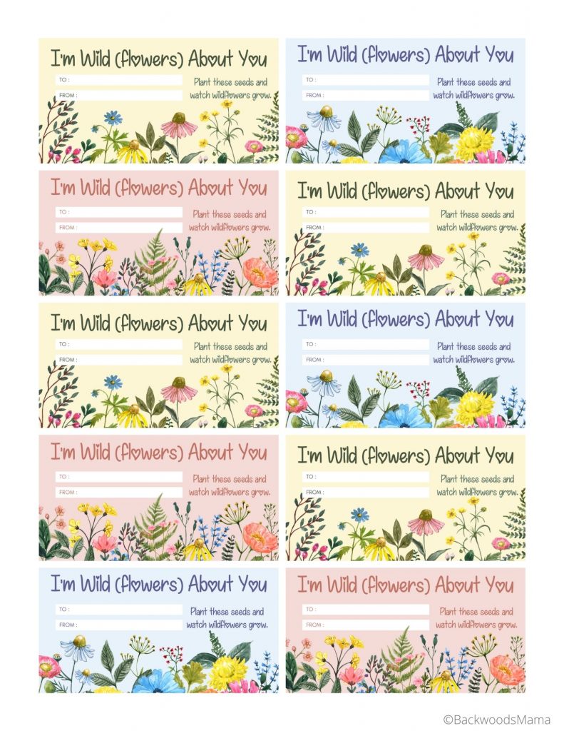 Print off these Valentine Wildflower Seed Tags and add them to your hearts or to a packet of wildflower seeds.