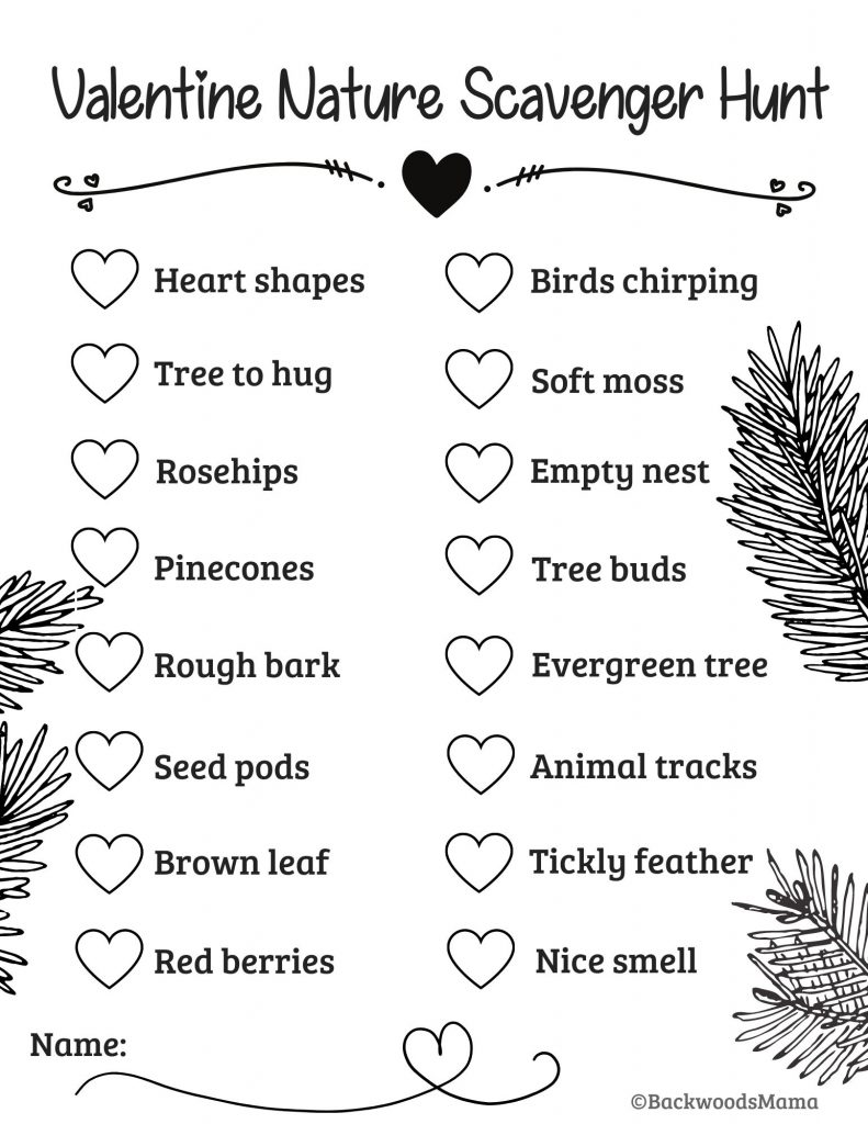 Valentine's Day Nature Scavenger Hunt (+ Free Printable) by Backwoods Mama
